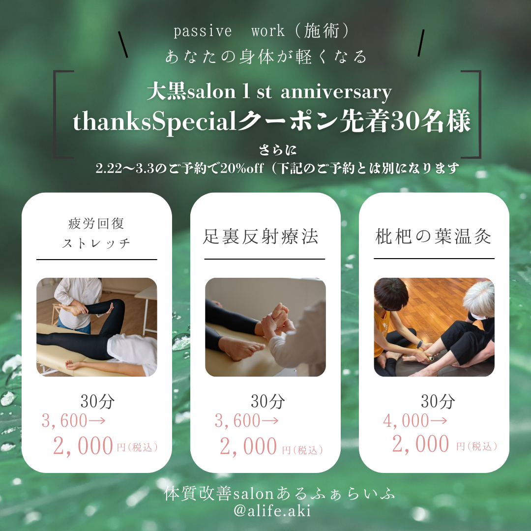 おかげさまで大黒サロンは1周年を迎えることができました。